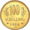 Decyzja „Schilling Act” z 20 grudnia 1924 r. wprowadziła szylinga w Austrii 1 marca 1925 r. Złota moneta 100 szylingów została wydana już w następnym roku, oprócz złotej monety 25 szylingów, jako pierwsza złota moneta nowej waluty szylingowej. Od 1926 do 1934 r. w Republice były one bite z odpowiednim emblematem na awersie, emisje z lat 1935-1938 noszą emblemat państwa korporacyjnego.