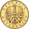 W centrum złotej monety znajduje się orzeł federalny pierwszej Republiki, otoczony okręgiem z kropkami. Po prawej stronie niósł sierpowate ostrze zwrócone do wewnątrz, a po lewej młot. Jego pierś zdobi czerwony herb z krzyżującą się srebrną poprzeczką. Nad orłem w półkolu od lewej do prawej widnieją słowa „REPUBLIC”, a poniżej, również od lewej do prawej w półkolu, „AUSTRIA”. Wokół napisu, prawie na krawędzi monety, znajduje się kolejne kropkowane koło.