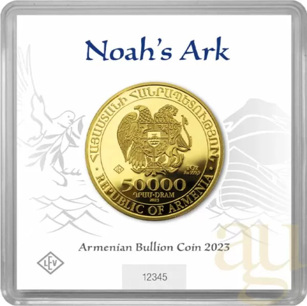 Złota moneta Arka Noego to popularny produkt inwestycyjny rozpoznawany na arenie międzynarodowej, emitowany przez Centralny Bank Armenii. Proces produkcyjny odbywa się w prywatnej, niemieckiej mennicy - LEV - Leipziger Edelmetall Verarbeitung. Wizerunek monety inspirowany jest biblijną historią Arki Noego, która była symbolem nadziei i nowego początku. Walor ten posiada gwarancję rządu Republiki Armenii oraz jest prawnym środkiem płatniczym w tym kraju. Moneta ta wykonana jest z kruszcu o najwyższej czystości - Au.9999.