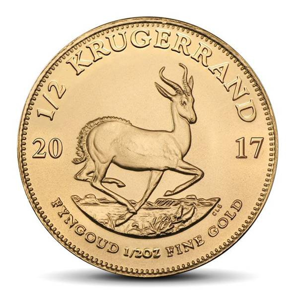 Przedstawia rysunek gazeli, uznawanej w RPA za symbol narodowy, nad którą widnieje napis “KRUGERRAND”. Po jej obu stronach znajdują się liczby reprezentujące rok wybicia. Pod spodem widnieje napis wskazujący zawartość złota w monecie: “FYNGOUD 1/2 OZ FINE GOLD”.