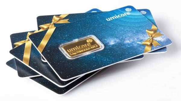 Sztabki złota Certi Card 2,5g UMICORE, idealna na prezent