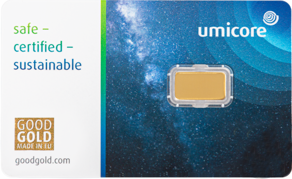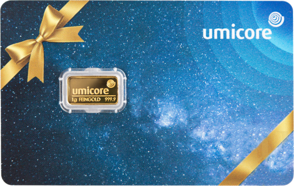 Sztabki złota Certi Card 1g UMICORE, idealna na prezent