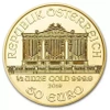 Złota moneta Wiedeńscy Filharmonicy 1/2 uncji produkowana od 1989 r. ma masę 15,55 grama i próbę 999,9/1000.