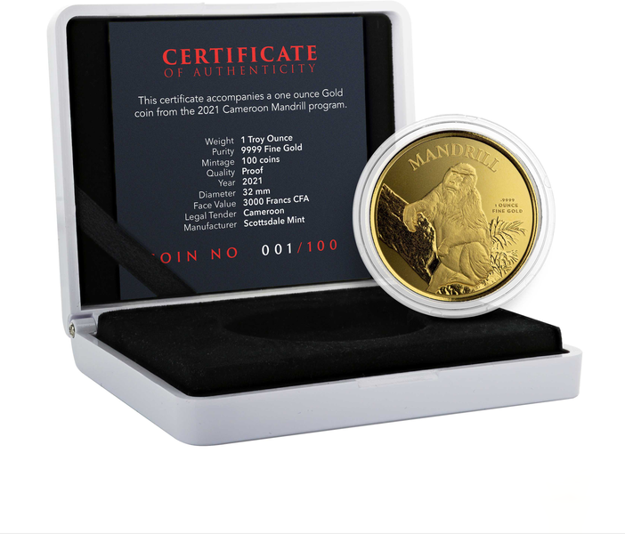 Moneta złota Cameroon: Mandrilll 2021 1 oz (48h)