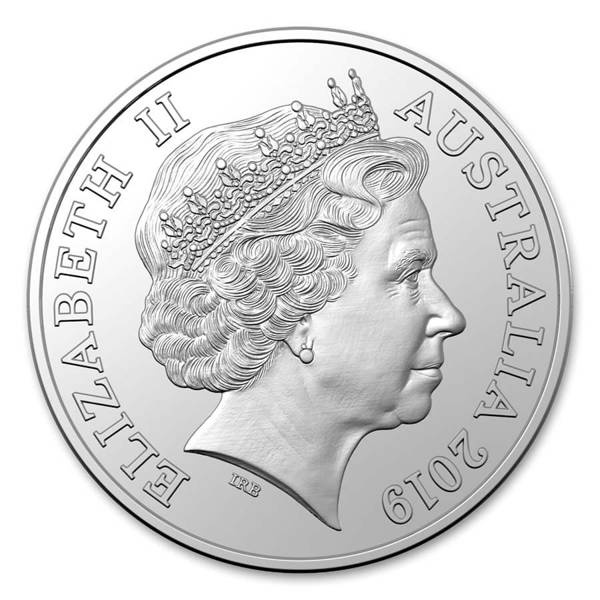 Wizerunek królowej otacza napis: „Elizabeth II” oraz „AUSTRALIA 2019”