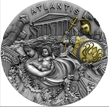 5$ ATLANTYDA - LEGENDARNE KRAINY to srebrna moneta 2 uncjowa ukazująca zniszczenie mitycznej Atlantydy.