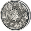 AWERS: Na awersie monety obok królowej Elżbiety II znalazły się wizerunki dwóch wybitnych tragików greckich - Sofoklesa i Ajschylosa.