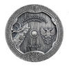 AWERS: Na awersie imitującym tarczę pięknej wojowniczki widnieje symbol Ostary - jeleń oraz charakterystyczny dla Germania Mint wzór dwugłowego orła. Tarczę uwzględniającą rok emisji, stop metalu i nominał okalają germańskie runy.
