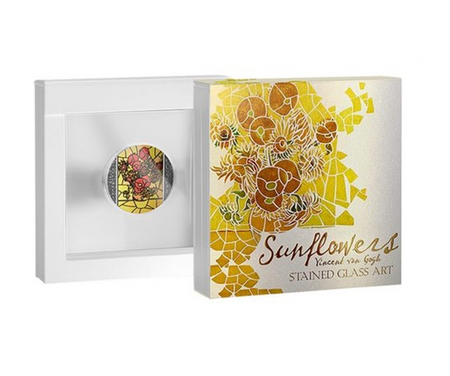 Moneta srebrna 10 Cedi Słoneczniki, Vincent Van Gogh - Witraże (48h)