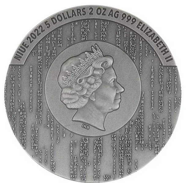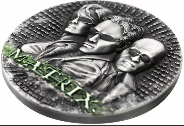 5$ MATRIX - to srebrna moneta przedstawiająca wizerunek głównych bohaterów filmu Matrix.