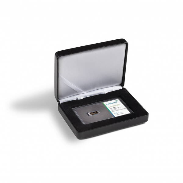 Pojemność: 1 sztabka złota w pozycji pionowej, w oryginalnym blistrze o wymiarach 86x54 mm