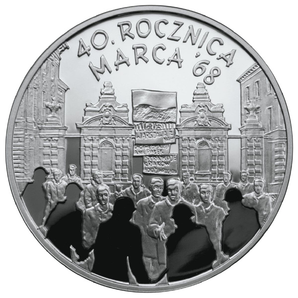 Moneta srebrna 10 zł - 40. ROCZNICA MARCA '68 - 2008 (48h)