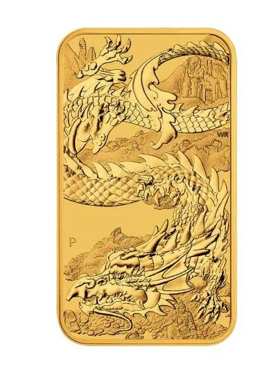 Znajduje się dynamiczne przedstawienie smoka – mitycznego stworzenia utożsamianego z władzą, ochroną i pomyślnością. Wzór łączy tradycyjną symbolikę z nowoczesnym designem, charakterystycznym dla renomowanej mennicy Perth Mint.